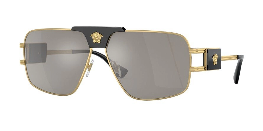 משקפי שמש וורסצ'ה לגברים דגם 2251 1002/6G 63-12-145 בשילוב צבע זהב עם עדשות בצבע Light Grey Mirror Silver. מסגרת מתכת. לדגם זה צבעים נוספים.