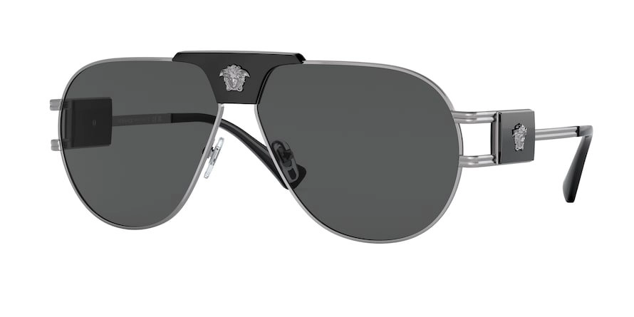 משקפי שמש וורסצ'ה לגברים דגם 2252 100187 63-12-145 בשילוב צבע אפור עם עדשות בצבע Dark Grey. מסגרת מתכת. לדגם זה צבעים נוספים.