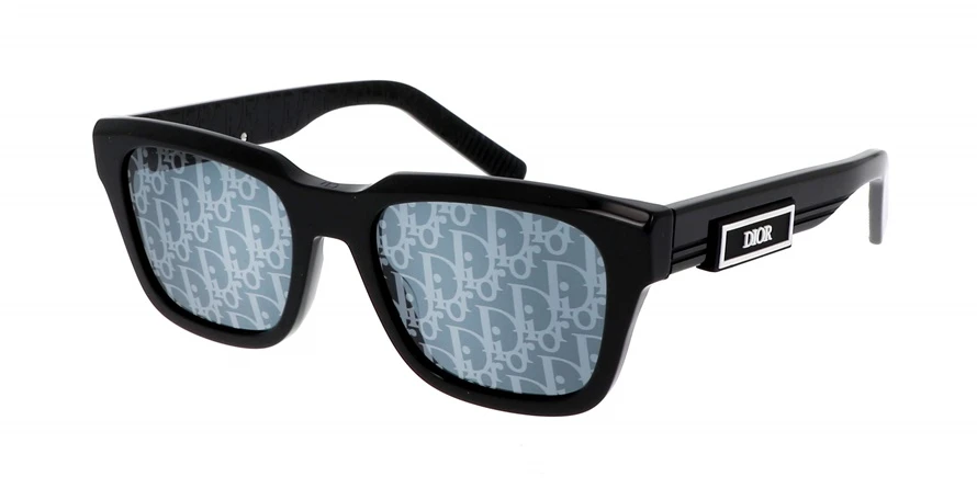 משקפי שמש כריסטיאן דיור לנשים דגם DIORB23 S1I 10B8 53-19-145 בשילוב צבעי מבריק, שחור עם עדשות בצבע כחול. סגנון הדגם אלגנטי. מסגרת פלסטיק.