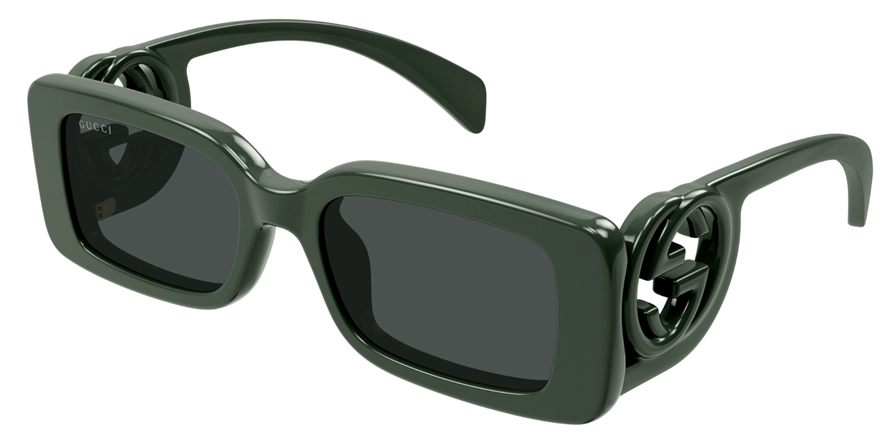 משקפי שמש גוצ'י יוניסקס דגם GG1325S 003 54-19-140 בשילוב צבעי ירוק, כהה עם עדשות בצבע אפור. סגנון הדגם אלגנטי, קלאסי. מסגרת פלסטיק. לדגם זה צבעים נוספים.