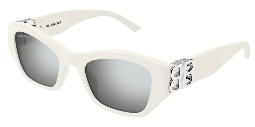 משקפי שמש בלנסיאגה יוניסקס דגם BB0311SK 003 53-21-140 בשילוב צבעי כסף, לבן, מבריק עם עדשות בצבע אפור. סגנון הדגם אלגנטי, יוקרתי, קלאסי, משקפיים עם קטע. מסגרת פלסטיק. לדגם זה צבעים נוספים.