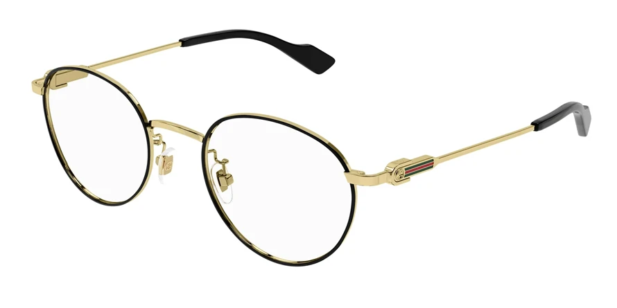 משקפי ראיה גוצ'י לנשים דגם GG1613OJ 001 49-21-140 בשילוב צבעי זהב, שחור סגנון הדגם אלגנטי, קלאסי. מסגרת מתכת. לדגם זה צבעים נוספים.