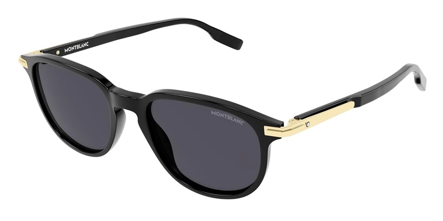 משקפי שמש מונטבלאנק לנשים דגם MB0276S 001 52-19-145 בשילוב צבעי זהב, מבריק, שחור עם עדשות בצבע אפור. סגנון הדגם אלגנטי, קלאסי. מסגרת פלסטיק.