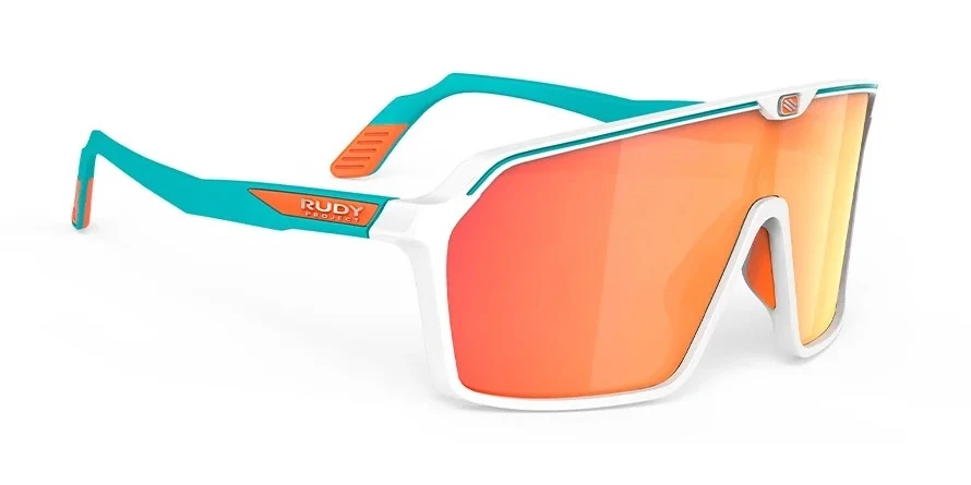 משקפי שמש רודי פרוג'קט יוניסקס SPINSHIELD דגם SP 72 40 58-0003 בשילוב צבעי טורקיז, כתום, לבן, מט עם עדשות בצבע חום. סגנון הדגם ספורט אלגנט, ספורטיבי, רכיבה. מסגרת פלסטיק. לדגם זה צבעים נוספים.