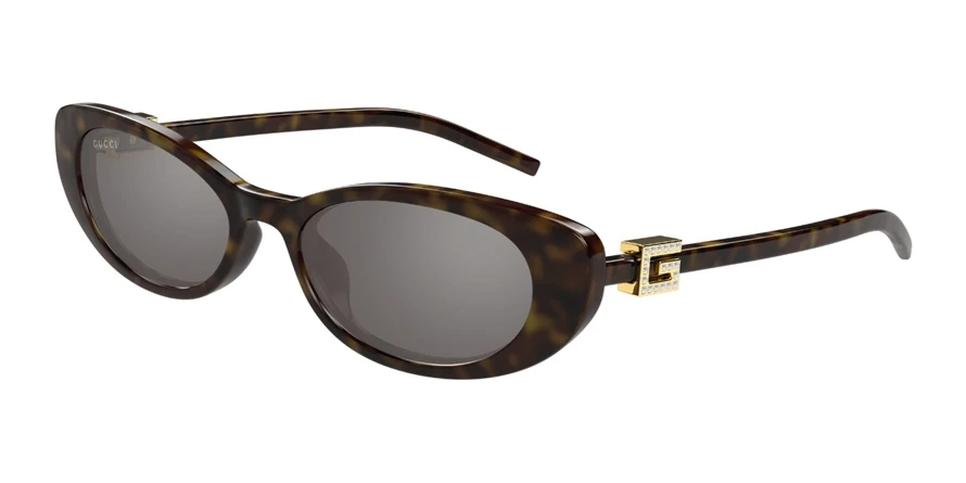 משקפי שמש גוצ'י יוניסקס דגם GG1680S 003 52-17-140 בשילוב צבעי זהב, חום, מבריק, מנומר עם עדשות בצבע אפור. סגנון הדגם אלגנטי, קלאסי. מסגרת פלסטיק. לדגם זה צבעים נוספים.