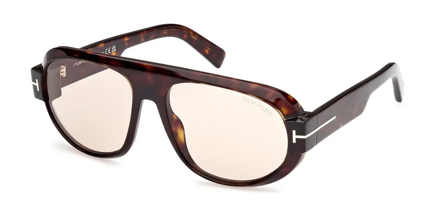 משקפי שמש טום פורד יוניסקס BLAKE-02 דגם FT1102 52E 59-16-140 בשילוב צבעי חום, מנומר עם עדשות בצבע קרם. סגנון הדגם אלגנטי, קלאסי. מסגרת פלסטיק. לדגם זה צבעים נוספים.