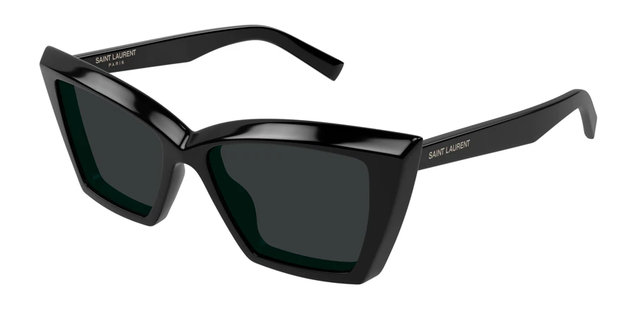 משקפי שמש איב סן לורן לנשים דגם SL657 001 54-16-145 בשילוב צבעי מבריק, שחור עם עדשות בצבע אפור. סגנון הדגם אלגנטי, קלאסי. מסגרת פלסטיק. לדגם זה צבעים נוספים.