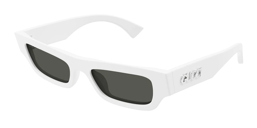 משקפי שמש גוצ'י יוניסקס דגם GG1839S 005 52-19-145 בשילוב צבעי לבן, מבריק עם עדשות בצבע אפור. סגנון הדגם אלגנטי, קלאסי. מסגרת פלסטיק. לדגם זה צבעים נוספים.