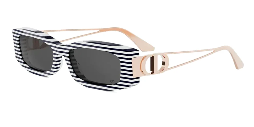 משקפי שמש כריסטיאן דיור יוניסקס דגם 30MONTAIGNE S14I 74B1 54-17-130 בשילוב צבעי זהב, לבן, שחור עם עדשות בצבע אפור. סגנון הדגם אלגנטי, קלאסי. מסגרת מתכת, פלסטיק.