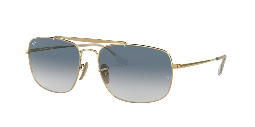 משקפי שמש רייבן לגברים THE COLONEL דגם RB 3560 001/3F 58-17-145 בשילוב צבע זהב עם עדשות בצבע כחולן. סגנון הדגם טייסים, אלגנטי. מסגרת מתכת.