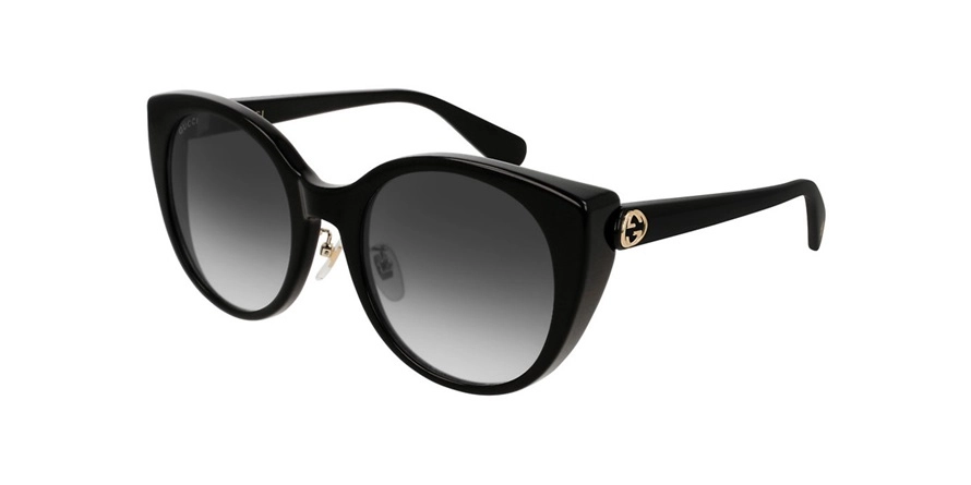משקפי שמש גוצ'י יוניסקס דגם GG0369S 001 54-22-145 בשילוב צבעי מבריק, שחור עם עדשות בצבע אפור. סגנון הדגם אלגנטי, קלאסי פקאצות. מסגרת פלסטיק.