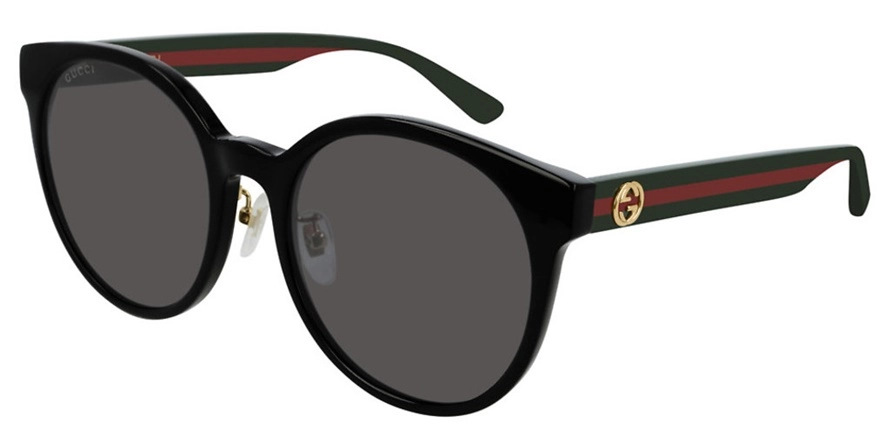משקפי שמש גוצ'י יוניסקס דגם GG0416SK 002 55-20-145 בשילוב צבעי אדום, ירוק, מבריק, שחור עם עדשות בצבע אפור. סגנון הדגם אלגנטי, קלאסי. מסגרת פלסטיק.