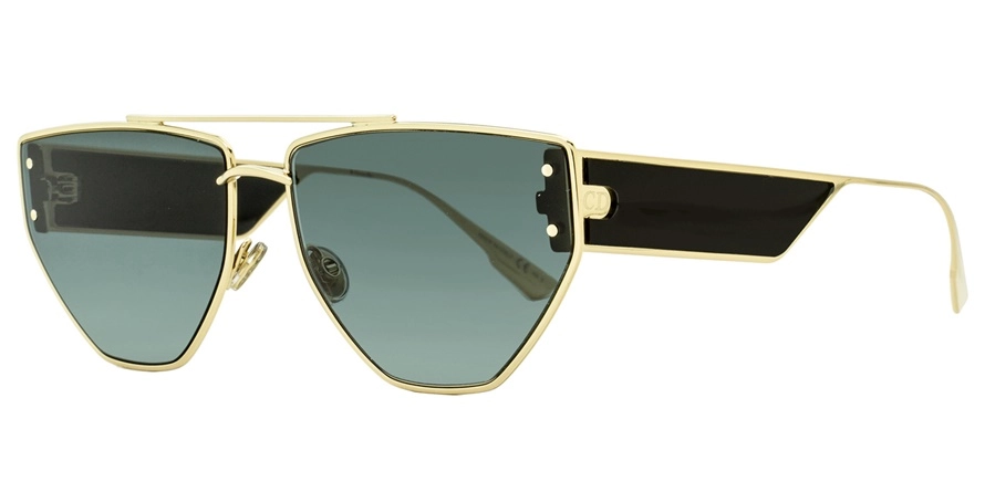 משקפי שמש כריסטיאן דיור לנשים דגם DIORCLAN2 J5G1I 61-15-150 בשילוב צבעי זהב, מבריק, שחור עם עדשות בצבע כחול. סגנון הדגם אלגנטי, קלאסי. מסגרת מתכת, פלסטיק.