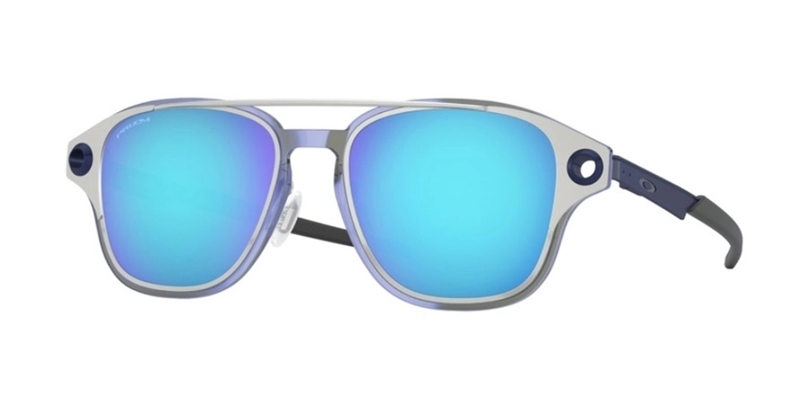 משקפי שמש אוקלי יוניסקס COLDFUSE דגם OO6042 04 52-19-138 בשילוב צבע כסף עם עדשות בצבע Prizm Sapphire. סגנון הדגם ספורט אלגנט, קלאסי. מסגרת טיטניום.