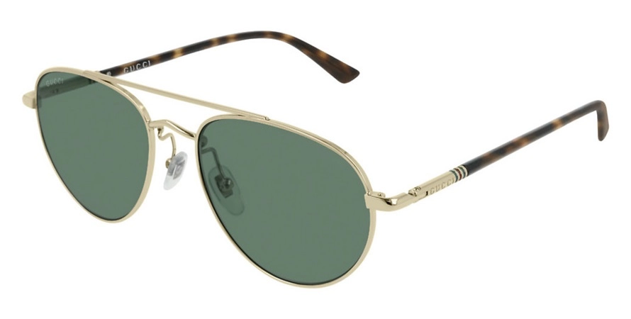 משקפי שמש גוצ'י יוניסקס דגם GG0388S 005 54-17-140 בשילוב צבעי כסף, מנומר עם עדשות בצבע ירוק. סגנון הדגם אלגנטי, טייסים. מסגרת מתכת.