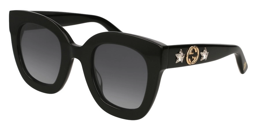 משקפי שמש גוצ'י יוניסקס דגם GG0208S 001 49-28-140 בשילוב צבעי מבריק, שחור עם עדשות בצבע אפור. סגנון הדגם אלגנטי, קלאסי. מסגרת פלסטיק.