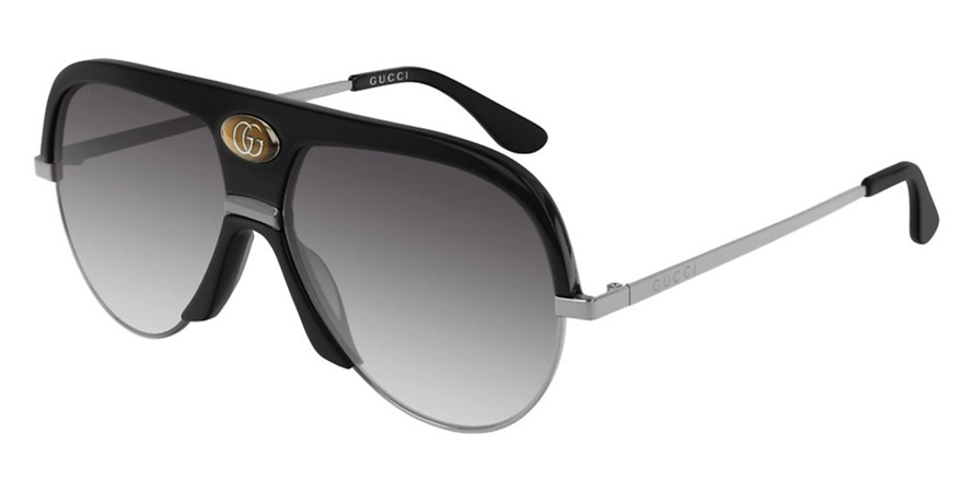 משקפי שמש גוצ'י יוניסקס דגם GG0477S 002 59-13-145 בשילוב צבעי כסף, מבריק, שחור עם עדשות בצבע אפור. סגנון הדגם אלגנטי, קלאסי פקאצות. מסגרת מתכת, פלסטיק.