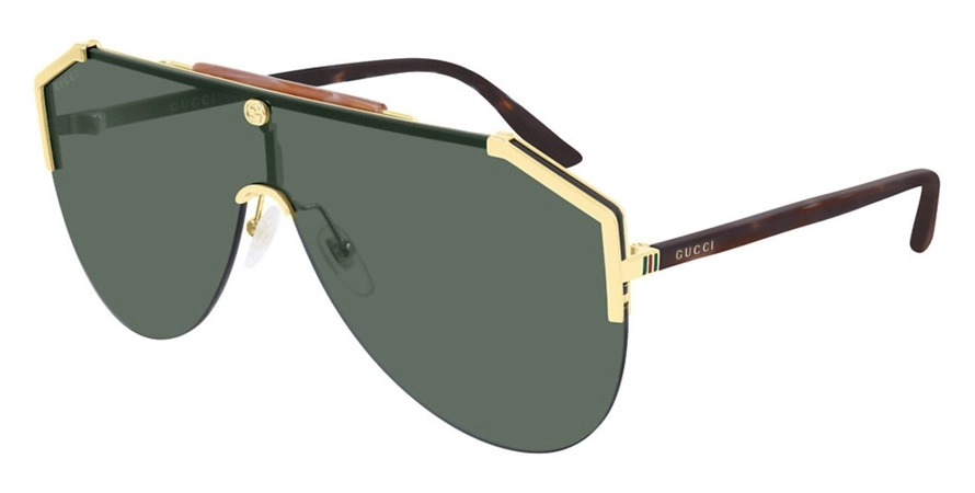 משקפי שמש גוצ'י יוניסקס דגם GG0584S 002 99-1-140 בשילוב צבעי זהב, מנומר עם עדשות בצבע ירוק. סגנון הדגם אלגנטי, קלאסי. מסגרת פלסטיק.