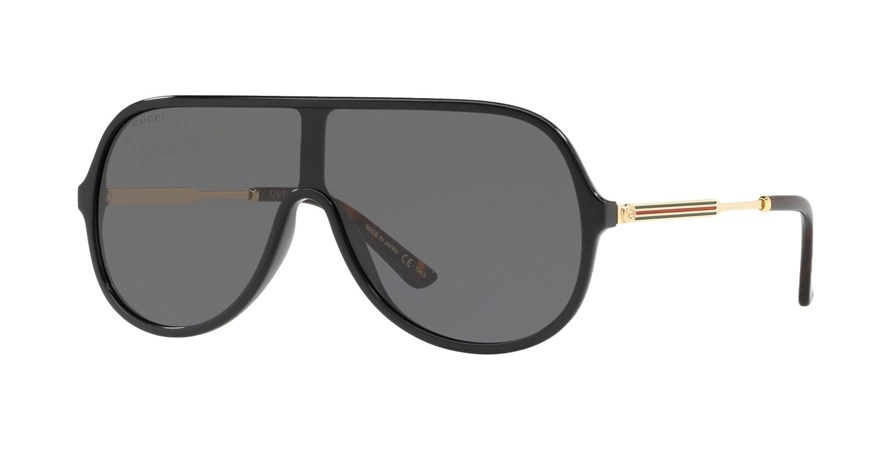 משקפי שמש גוצ'י יוניסקס דגם GG0199S 001 בשילוב צבעי זהב, מבריק, מנומר, שחור עם עדשות בצבע אפור. סגנון הדגם אלגנטי, קלאסי. מסגרת מתכת, פלסטיק.