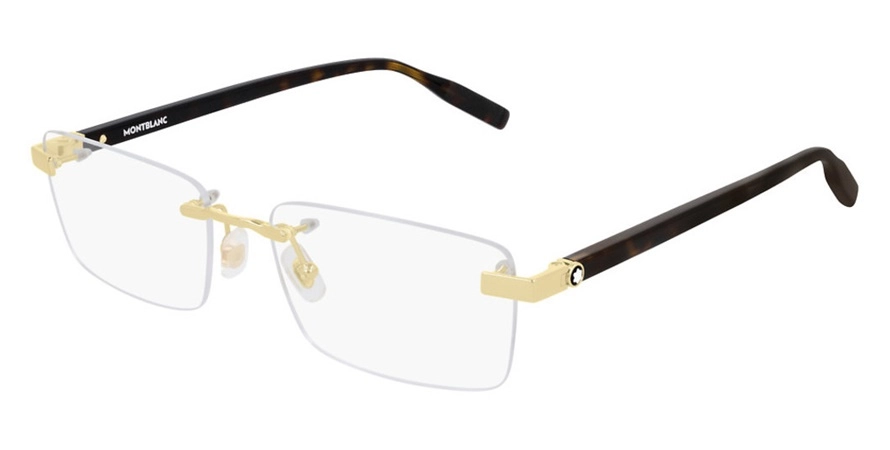 משקפי ראיה מונטבלאנק יוניסקס דגם MB0055O 002 56-17-145 בשילוב צבעי זהב, מבריק, מנומר סגנון הדגם קלאסי, אלגנטי. מסגרת מתכת, פלסטיק. לדגם זה צבעים נוספים.