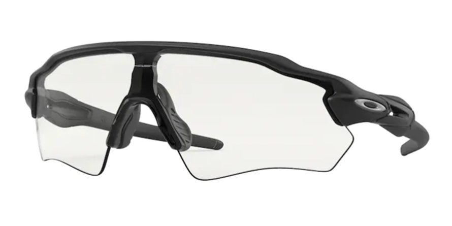 משקפי שמש אוקלי לגברים RADAR EV PATH דגם OO9208 74 38-138-128 בשילוב צבע שחור עם עדשות בצבע שקוף. מסגרת פלסטיק. לדגם זה צבעים נוספים.