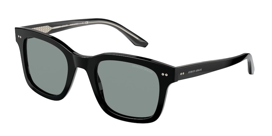 משקפי שמש ג'ורג'יו ארמני לגברים דגם AR8138 5001/56 51-23-145 בשילוב צבע שחור עם עדשות בצבע כחול. מסגרת פלסטיק.