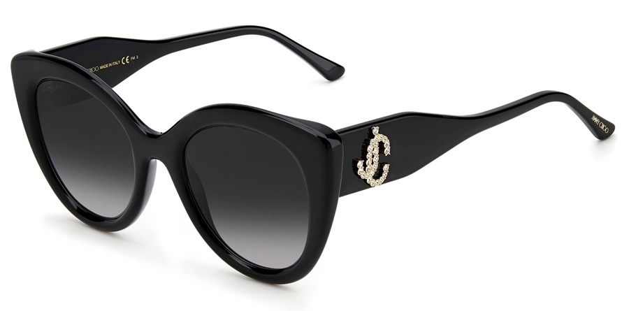 משקפי שמש ג'ימי צ'ו לנשים דגם LEONE/S 807/9O 52-22-145 בשילוב צבע שחור עם עדשות בצבע אפור. סגנון הדגם אלגנטי. מסגרת פלסטיק. לדגם זה צבעים נוספים.