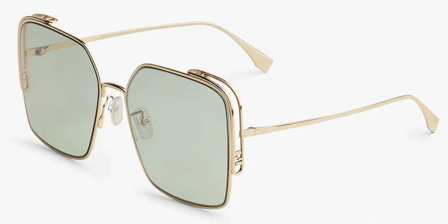 משקפי שמש פנדי יוניסקס דגם FE40038U 10Q 59-17-135 בשילוב צבע זהב עם עדשות בצבע ירוק. סגנון הדגם אלגנטי. מסגרת פלסטיק. לדגם זה צבעים נוספים.