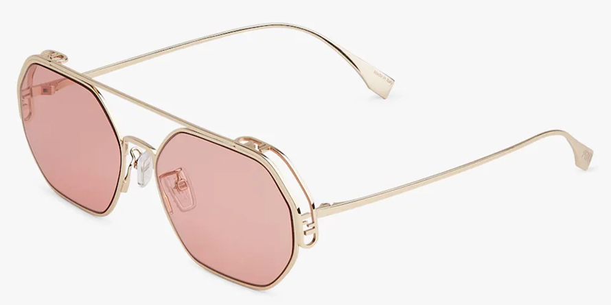 משקפי שמש פנדי יוניסקס דגם FE40039U 10S 57-17-135 בשילוב צבע זהב עם עדשות בצבע ורוד. סגנון הדגם אלגנטי. מסגרת מתכת. לדגם זה צבעים נוספים.