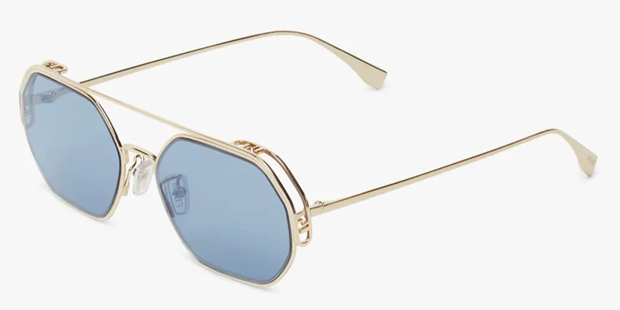 משקפי שמש פנדי יוניסקס דגם FE40039U 10X 57-17-135 בשילוב צבע זהב עם עדשות בצבע כחול. סגנון הדגם אלגנטי. מסגרת מתכת. לדגם זה צבעים נוספים.