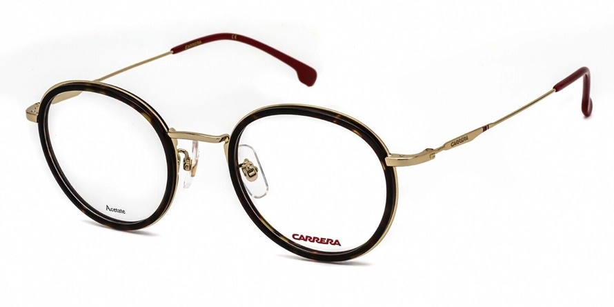 משקפי ראיה קאררה יוניסקס דגם 163/V/F 086 47-21-145 בשילוב צבעי אדום, זהב, חום סגנון הדגם אלגנטי, קלאסי. מסגרת מתכת.