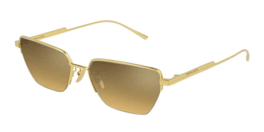 משקפי שמש בוטגה ונטה יוניסקס דגם BV1107S 002 57-17-140 בשילוב צבע זהב עם עדשות בצבע חום. סגנון הדגם אלגנטי, יוקרתי, קלאסי, משקפיים עם קטע. מסגרת מתכת.