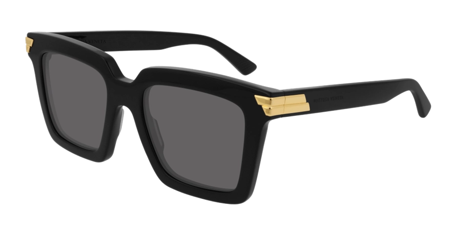 משקפי שמש בוטגה ונטה יוניסקס דגם BV1005S 001 53-21-145 בשילוב צבעי זהב, מבריק, שחור עם עדשות בצבע אפור. סגנון הדגם אלגנטי, יוקרתי, קלאסי, משקפיים עם קטע. מסגרת פלסטיק.