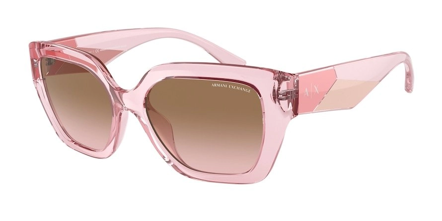 משקפי שמש ארמני אקסצ'יינג לנשים דגם AX4125SU 833911 54-17-140 בשילוב צבע ורוד עם עדשות בצבע Pink Gradient Grey. מסגרת פלסטיק. לדגם זה צבעים נוספים.