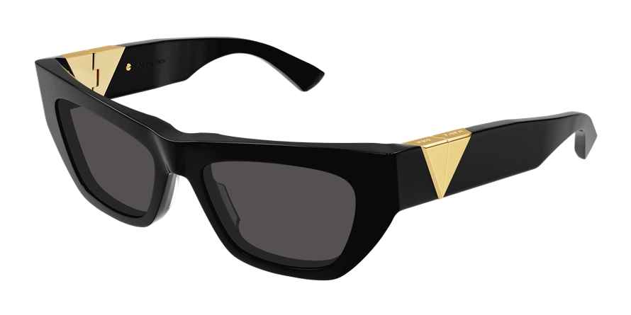משקפי שמש בוטגה ונטה יוניסקס דגם BV1177S 001 52-17-130 בשילוב צבעי זהב, מבריק, שחור עם עדשות בצבע אפור. סגנון הדגם אלגנטי, יוקרתי, קלאסי, משקפיים עם קטע. מסגרת פלסטיק.