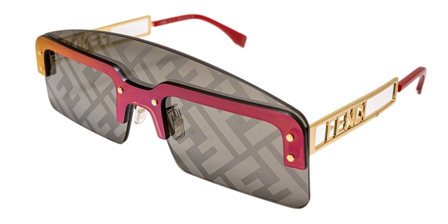 משקפי שמש פנדי יוניסקס דגם FE40023U 32A 55-16-145 בשילוב צבעי אדום, זהב עם עדשות בצבע אפור. סגנון הדגם אלגנטי. מסגרת פלסטיק.