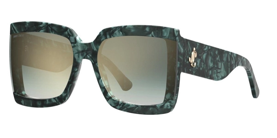 משקפי שמש ג'ימי צ'ו לנשים דגם RENEE/S YIB/EZ 61-19-145 בשילוב צבעי ירוק, מנומר עם עדשות בצבעי אפור, בהיר, ירוק. סגנון הדגם אלגנטי, קלאסי. מסגרת פלסטיק. לדגם זה צבעים נוספים.