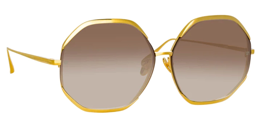 משקפי שמש לינדה פארו יוניסקס Camila 8410 דגם LFL/1208 1 63-12-145 בשילוב צבע זהב עם עדשות בצבע חום. סגנון הדגם אלגנטי, קלאסי. מסגרת מתכת.