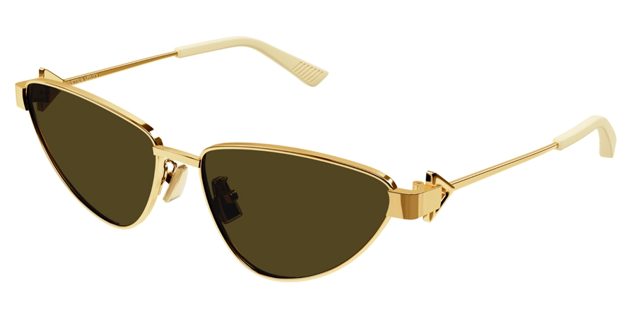 משקפי שמש בוטגה ונטה יוניסקס דגם BV1186S 002 59-16-140 בשילוב צבע זהב עם עדשות בצבע חום. סגנון הדגם אלגנטי, יוקרתי, קלאסי, משקפיים עם קטע. מסגרת מתכת.