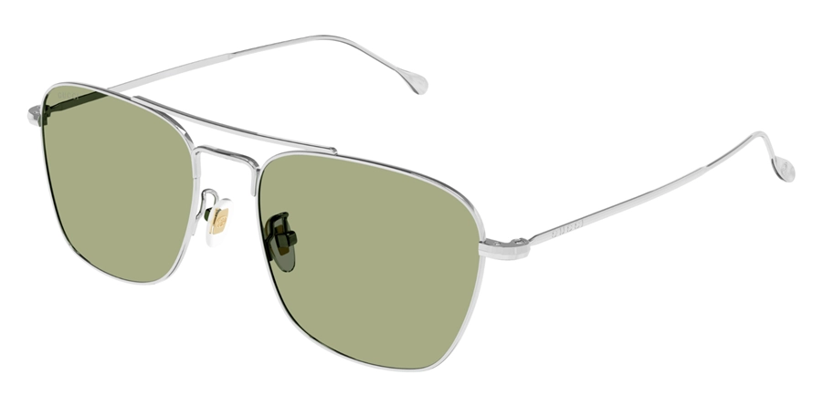 משקפי שמש גוצ'י לנשים דגם GG1183S 004 53-17-150 בשילוב צבע כסף עם עדשות בצבע ירוק. סגנון הדגם אלגנטי, קלאסי. מסגרת מתכת.
