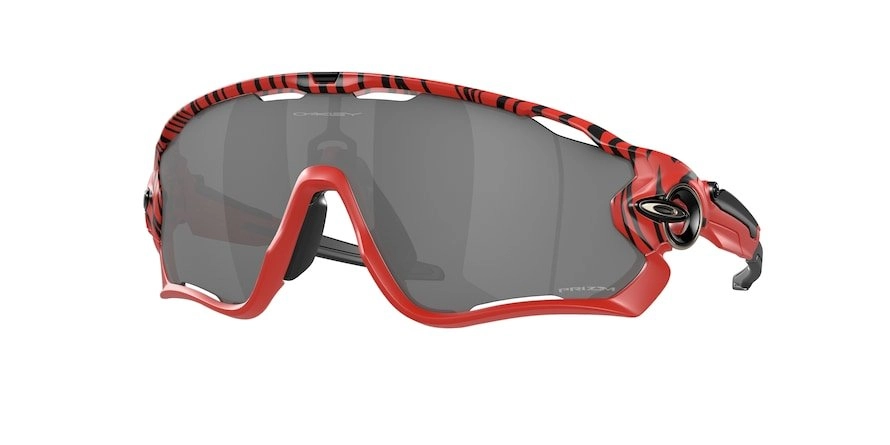 משקפי שמש אוקלי יוניסקס JAWBREAKER דגם OO9290 67 31-131-121 בשילוב צבע אדום עם עדשות בצבע Prizm Black. מסגרת פלסטיק. לדגם זה צבעים נוספים.