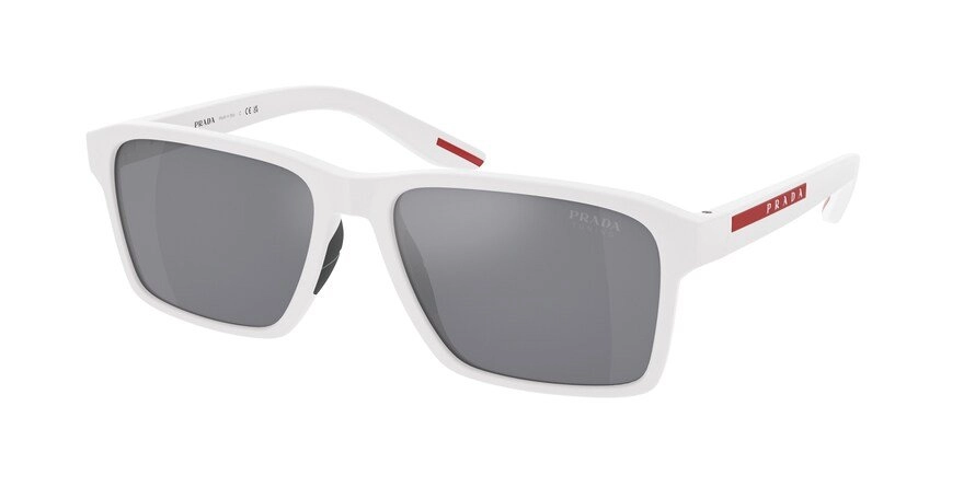 משקפי שמש פראדה ספורט לגברים דגם SPS 05Y TWK-40A 58-17-145 בשילוב צבע לבן עם עדשות בצבע Light Blue Mirror Silver. מסגרת פלסטיק. לדגם זה צבעים נוספים.