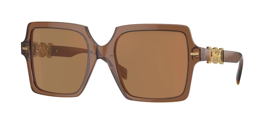 משקפי שמש וורסצ'ה לנשים דגם 4441 5028/O 55-20-140 בשילוב צבע חום עם עדשות בצבע Brown Orange Metallic. מסגרת פלסטיק. לדגם זה צבעים נוספים.