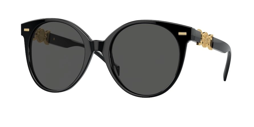 משקפי שמש וורסצ'ה לנשים דגם 4442 GB1/87 55-20-140 בשילוב צבע שחור עם עדשות בצבע Dark Grey. מסגרת פלסטיק.