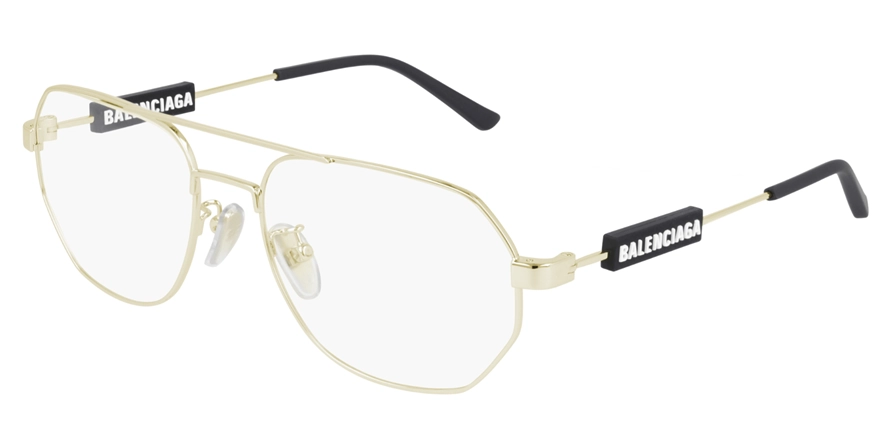 משקפי ראיה באלנסיאגה יוניסקס דגם BB0117O 003 57-18-145 בשילוב צבע זהב סגנון הדגם אלגנטי, יוקרתי, קלאסי, משקפיים עם קטע. מסגרת פלסטיק. לדגם זה צבעים נוספים.
