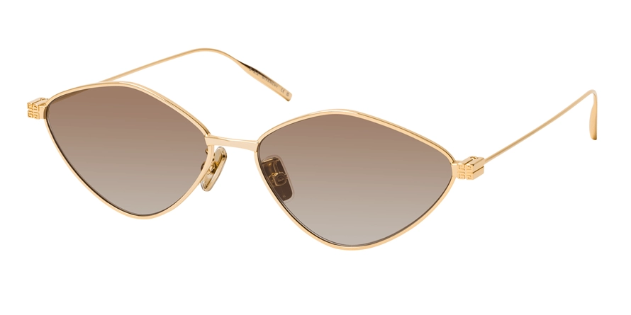 משקפי שמש ג'יבנצ'י פריס יוניסקס דגם GV40040U 30F 57-14-140 בשילוב צבע זהב עם עדשות בצבע חום. סגנון הדגם אלגנטי, קלאסי. מסגרת מתכת. לדגם זה צבעים נוספים.