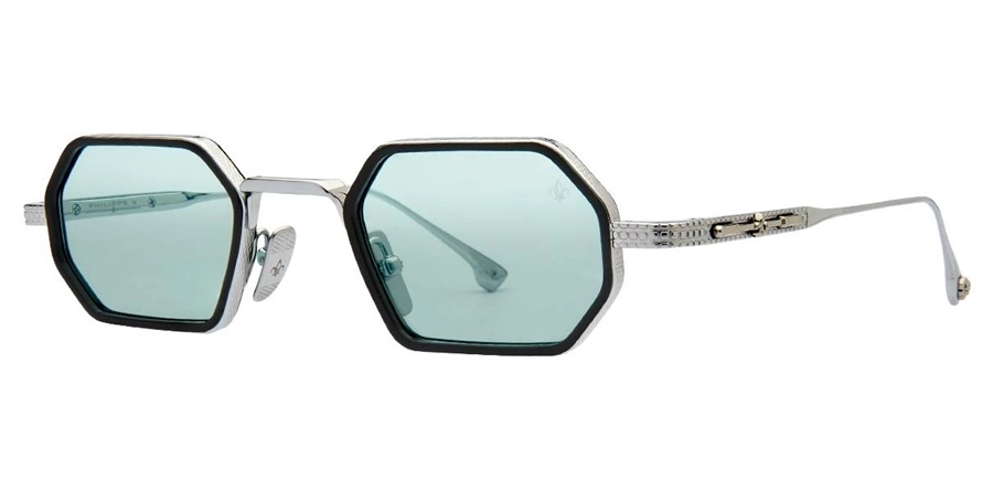 משקפי שמש פיליפ וי יוניסקס דגם PV-N19.1S SL-GR 46-25-145 בשילוב צבעי כסף, שחור עם עדשות בצבע טורקיז. סגנון הדגם אלגנטי, קלאסי. מסגרת מתכת. לדגם זה צבעים נוספים.