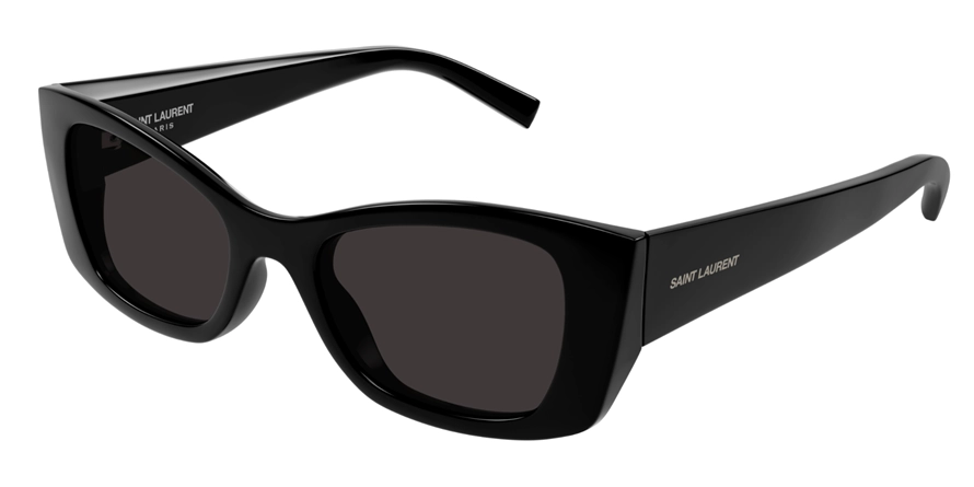 משקפי שמש איב סן לורן לנשים דגם SL593 001 52-20-145 בשילוב צבעי מבריק, שחור עם עדשות בצבע אפור. סגנון הדגם אלגנטי, קלאסי. מסגרת פלסטיק. לדגם זה צבעים נוספים.