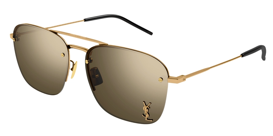 משקפי שמש איב סן לורן לנשים דגם SL309 M 004 57-15-145 בשילוב צבע זהב עם עדשות בצבע אפור. סגנון הדגם אלגנטי, קלאסי. מסגרת מתכת. לדגם זה צבעים נוספים.