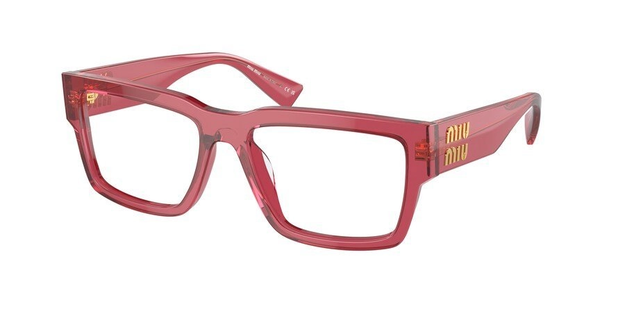 משקפי ראיה מיו מיו לנשים דגם VMU 02X 15Q-1O1 54-17-140 בשילוב צבע אדום מסגרת פלסטיק. לדגם זה מידות וצבעים נוספים.